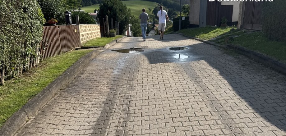 Analog zur Maßnahme in Leutnitz ist auch hier das Ziel, eine durchgehend ebene, tragfähige und wasserführende Pflasteroberfläche herzustellen.