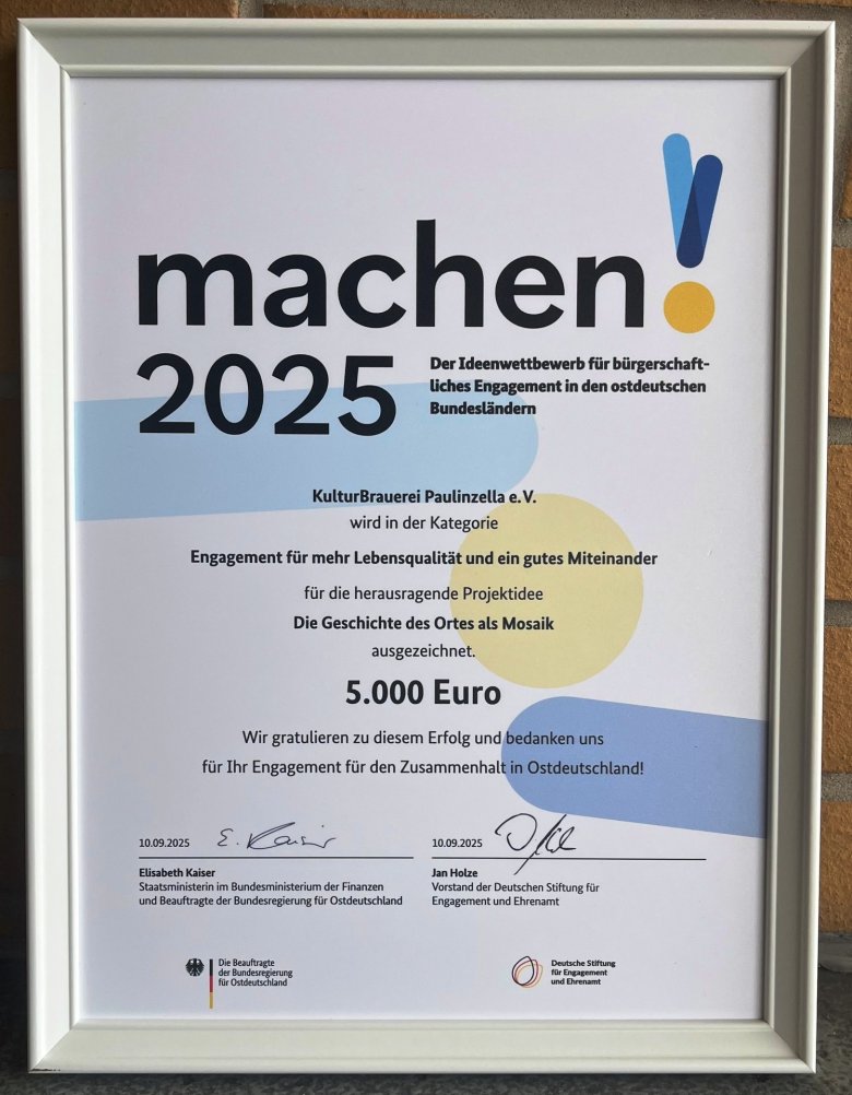 Der Erfolg spricht für sich: Aus über 1100 Bewerbungen gehört Paulinzella zu den Topprojekten des machen!2025-Wettbewerbs. Das zeigt, Engagement kennt keine Ortsgröße. Wenn Menschen zusammenstehen, entsteht Großes – auch, oder gerade, in einem kleinen Dorf.
