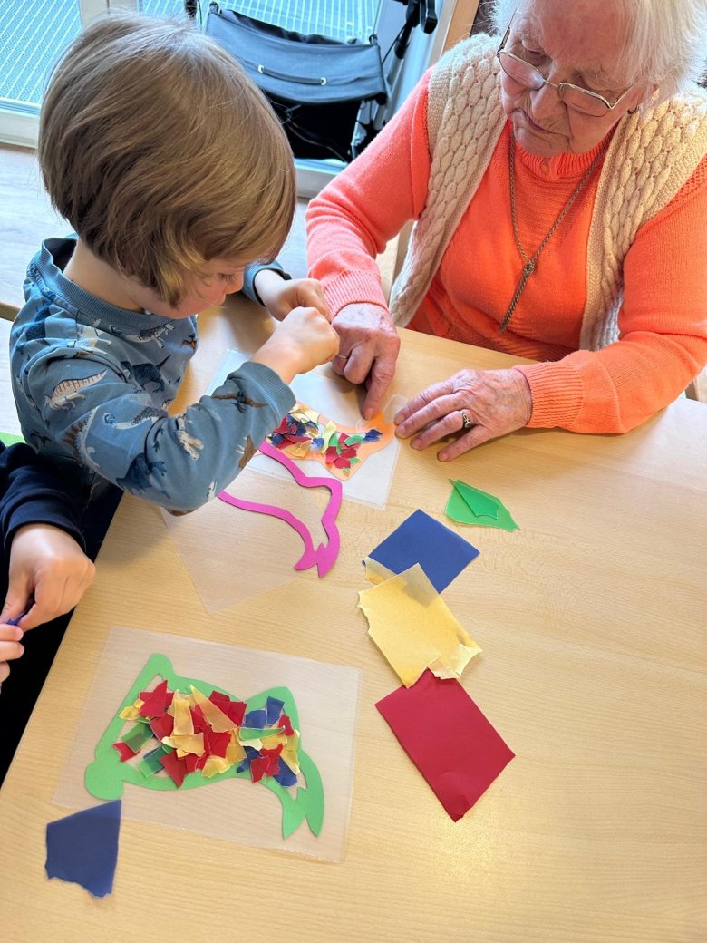 Mit viel Geduld, einem Lächeln im Gesicht und kreativen Ideen wurde geschnitten, geklebt und gestaltet. Es war schön zu sehen, wie Jung und Alt zusammenarbeiten, sich gegenseitig helfen und dabei ins Gespräch kommen.