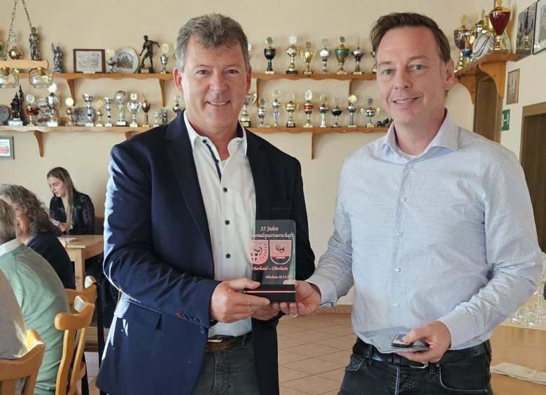 Genau 35 Jahre später nahmen ihre amtierenden Nachfolger – Ingo Kürsten als Ortsteilbürgermeister von Oberhain und Carsten Joneitis als Bürgermeister von Oberhaid – das Jubiläum zum Anlass, sich in kleiner Runde zu treffen und die langjährige, freundschaftliche Verbindung der beiden Gemeinden zu würdigen.