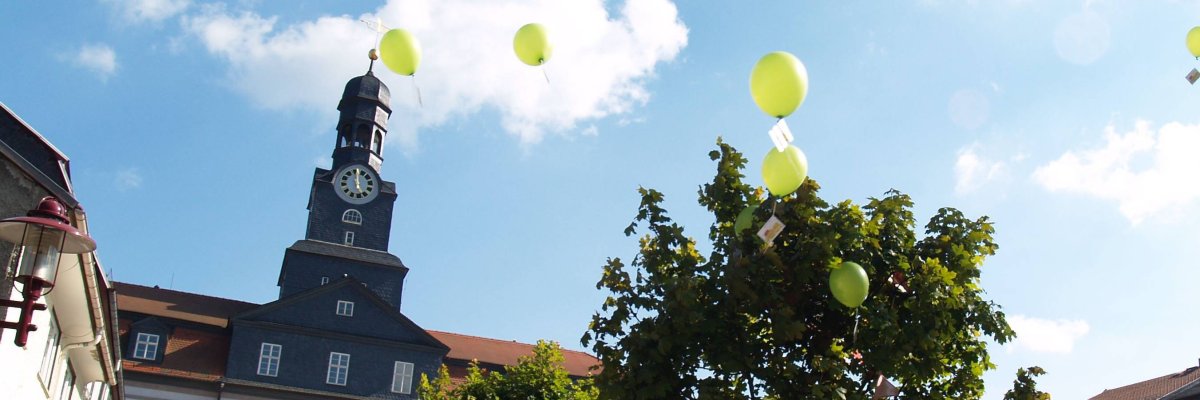 Es gibt eine evangelische Kirche- das ist die Stadtkirche "Zum Lobe Gottes" und eine katholische -das ist die Friedenskirche.